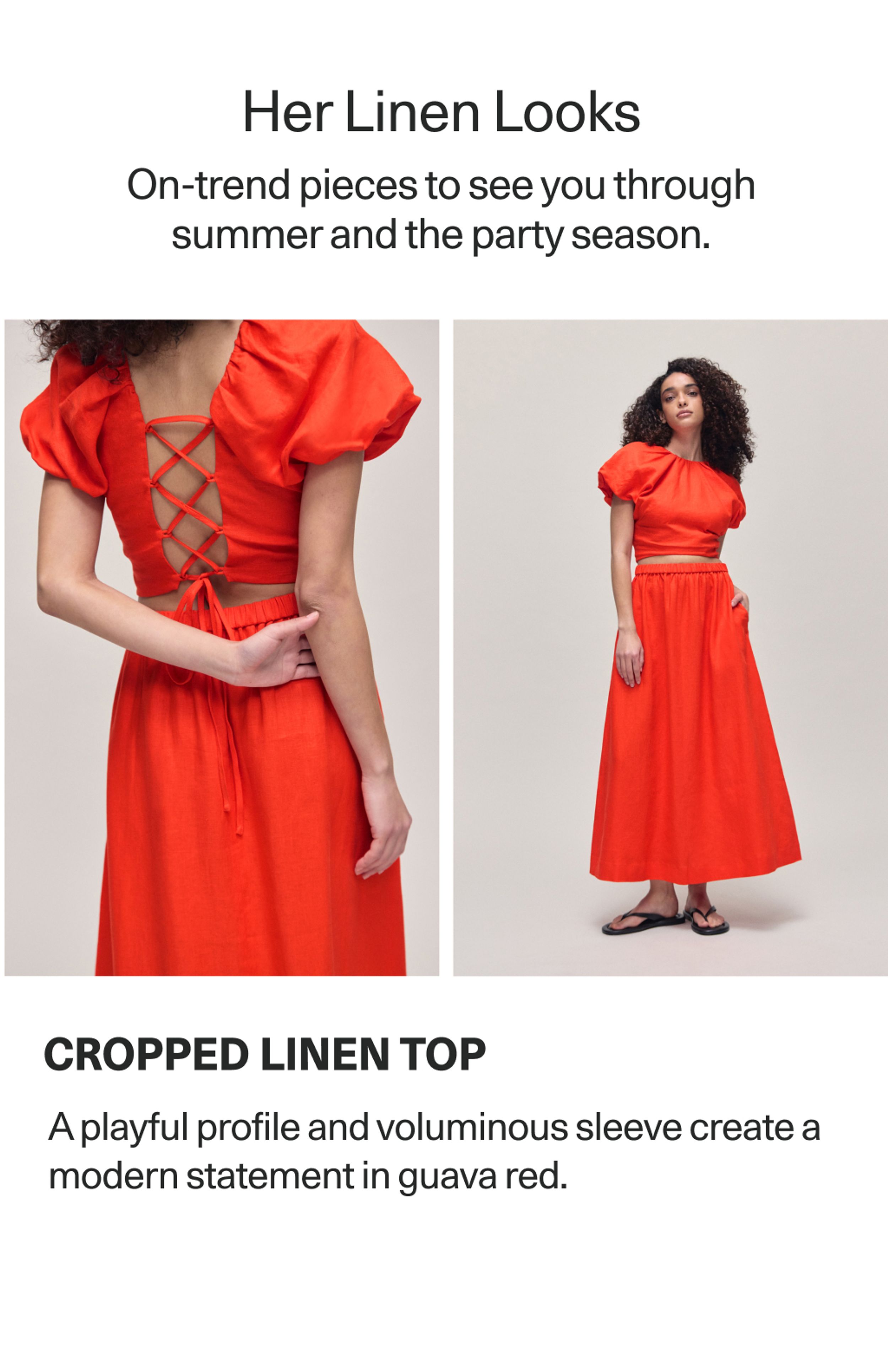 Bold cuts, fresh fits, and new ways to wear it. We’re looking at linen through a modern lens. Once reserved for classic summer staples, linen is more than just ‘easy breezy’ — think vivid colour, soft volume and graphic prints. Celebrity stylist Tori Knowles gives us her take on some of the trending linen looks from our newest collection. Effortless yet unexpectedly elevated, it’s time to see linen in a whole new light.