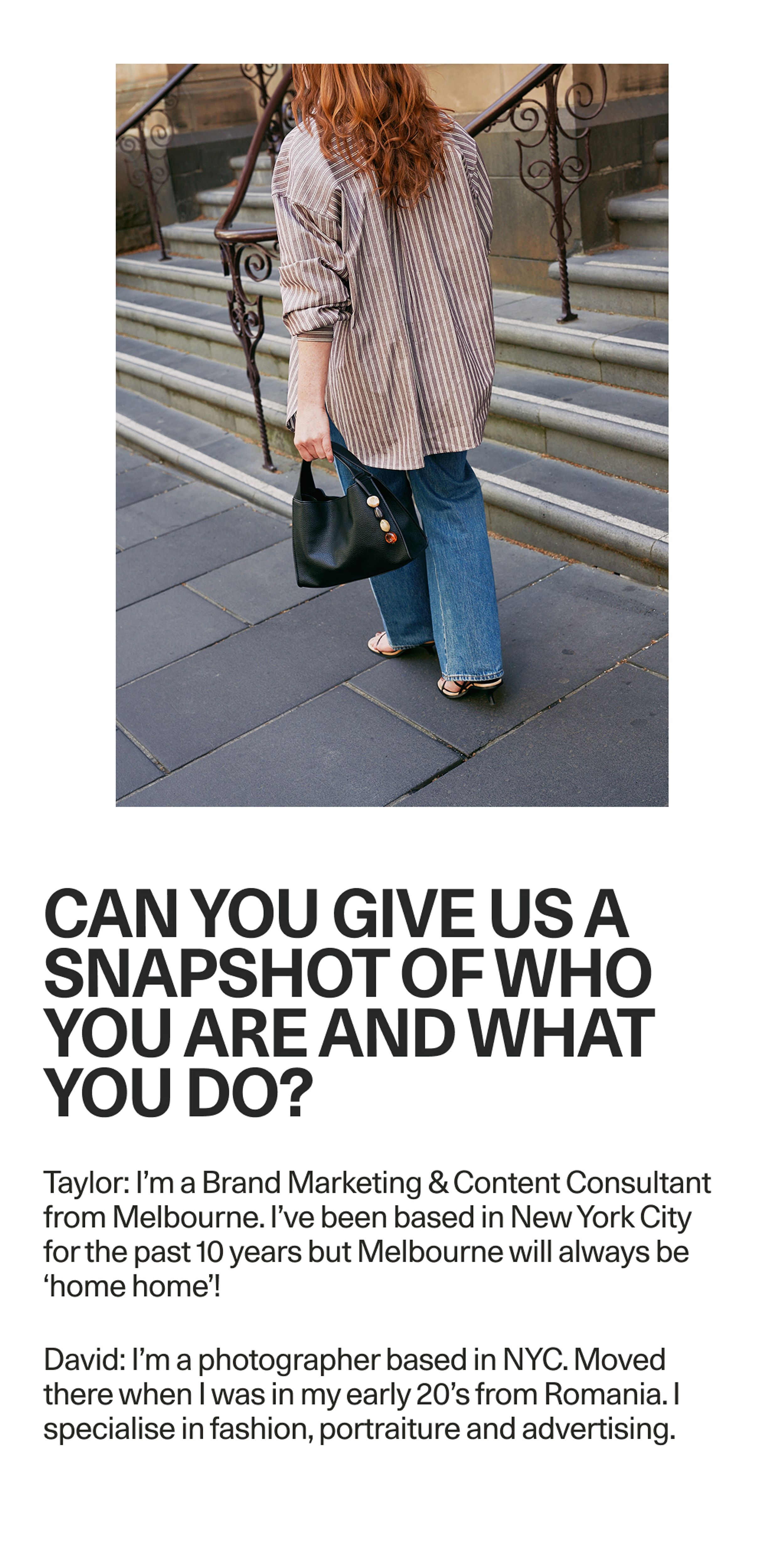 From New York to Melbourne, creative couple Taylor Kelly and David Burlacu give us an insight into their world and the style that defines it.