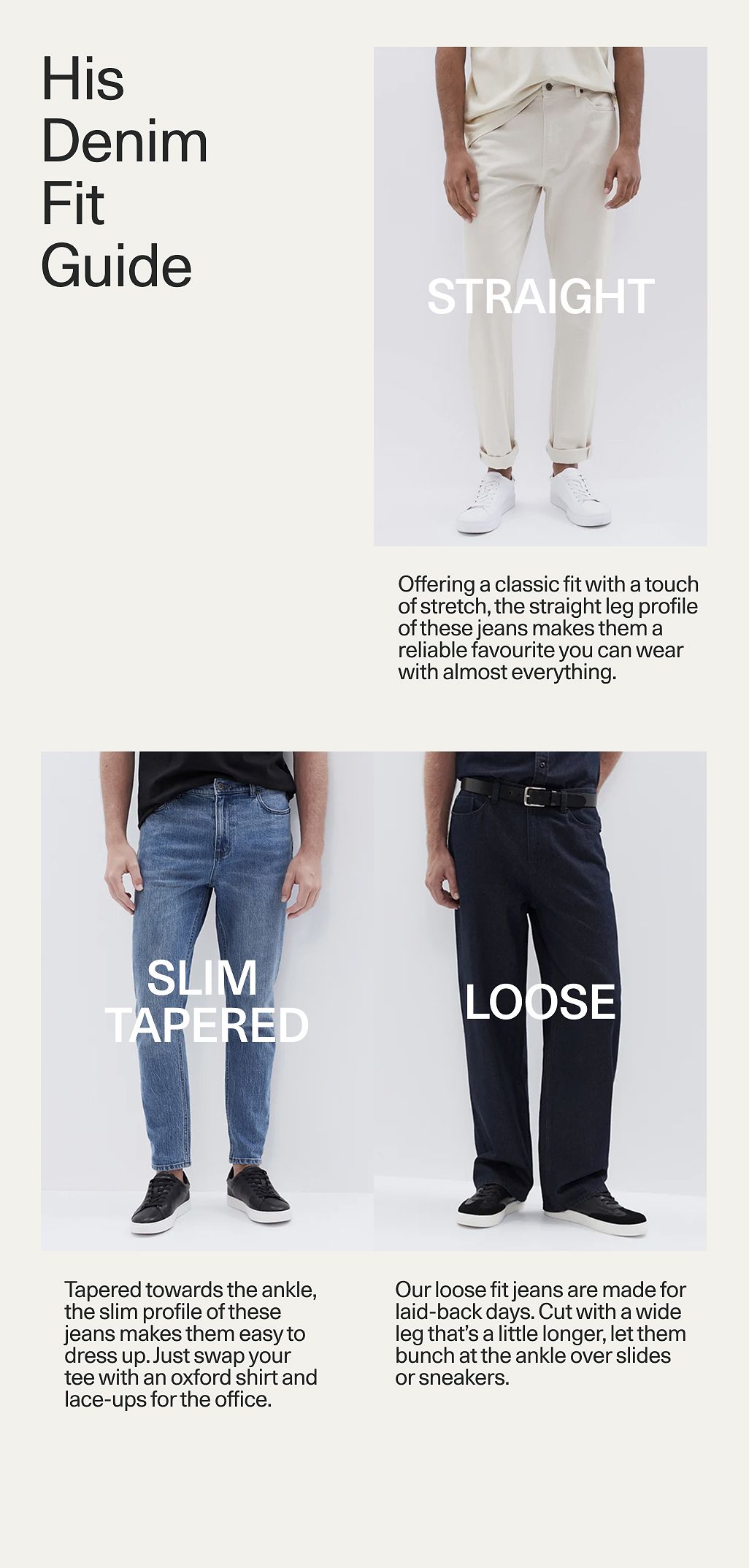 Basics that aren’t so basic - that’s the key to building a modern wardrobe. Our considered fits and quality fabrics take the essential pieces we all need to another level. Wear them on their own, or use them as the foundation to build your look. Start with the perfect tee, tank and jeans then layer your way to endless outfits for every day of the week.